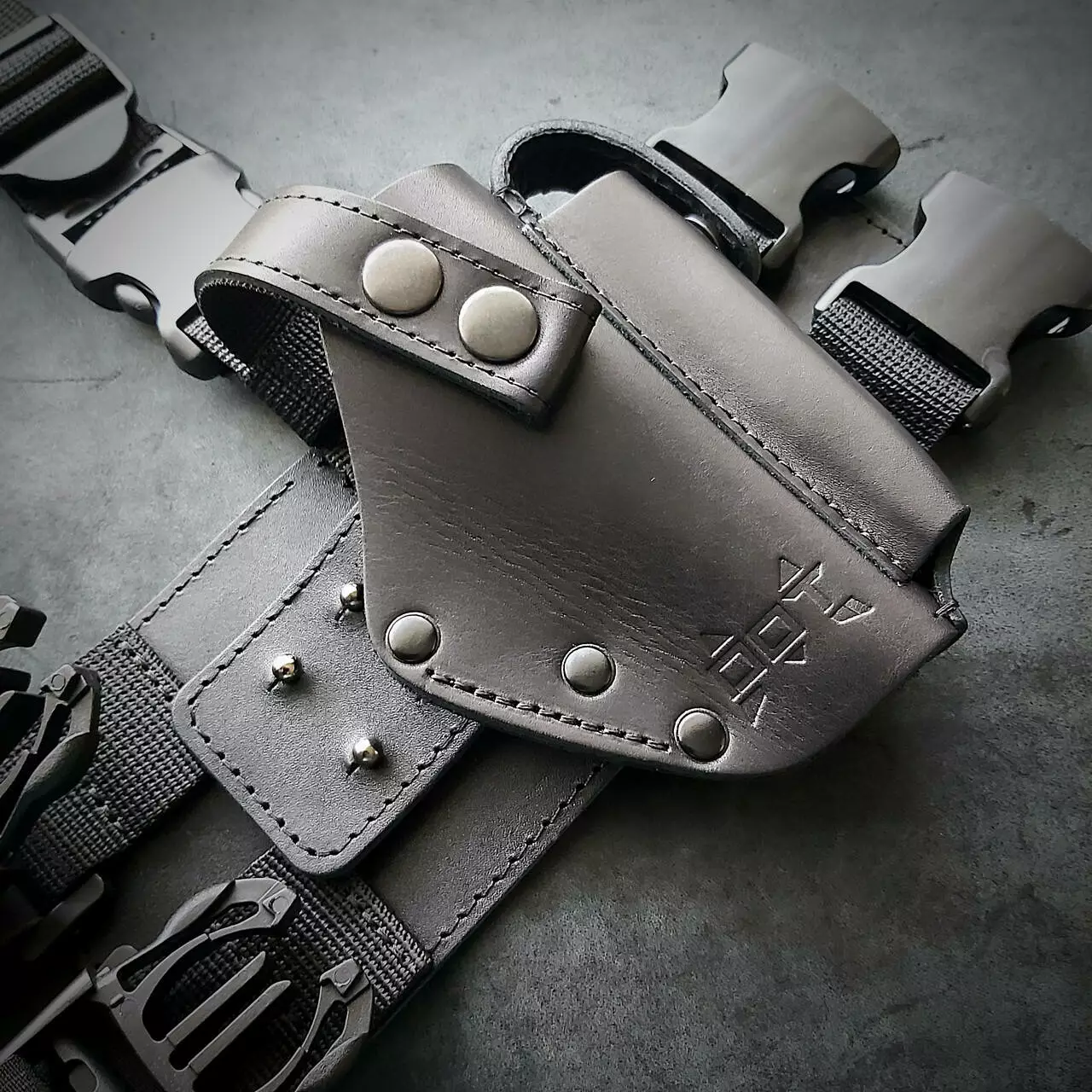 - Кобура фіксується зверху через кільце і на 4 кобурних болтах збоку, що запобігає відстібанню під час бігу. Не бовтається, сидить щільно.
