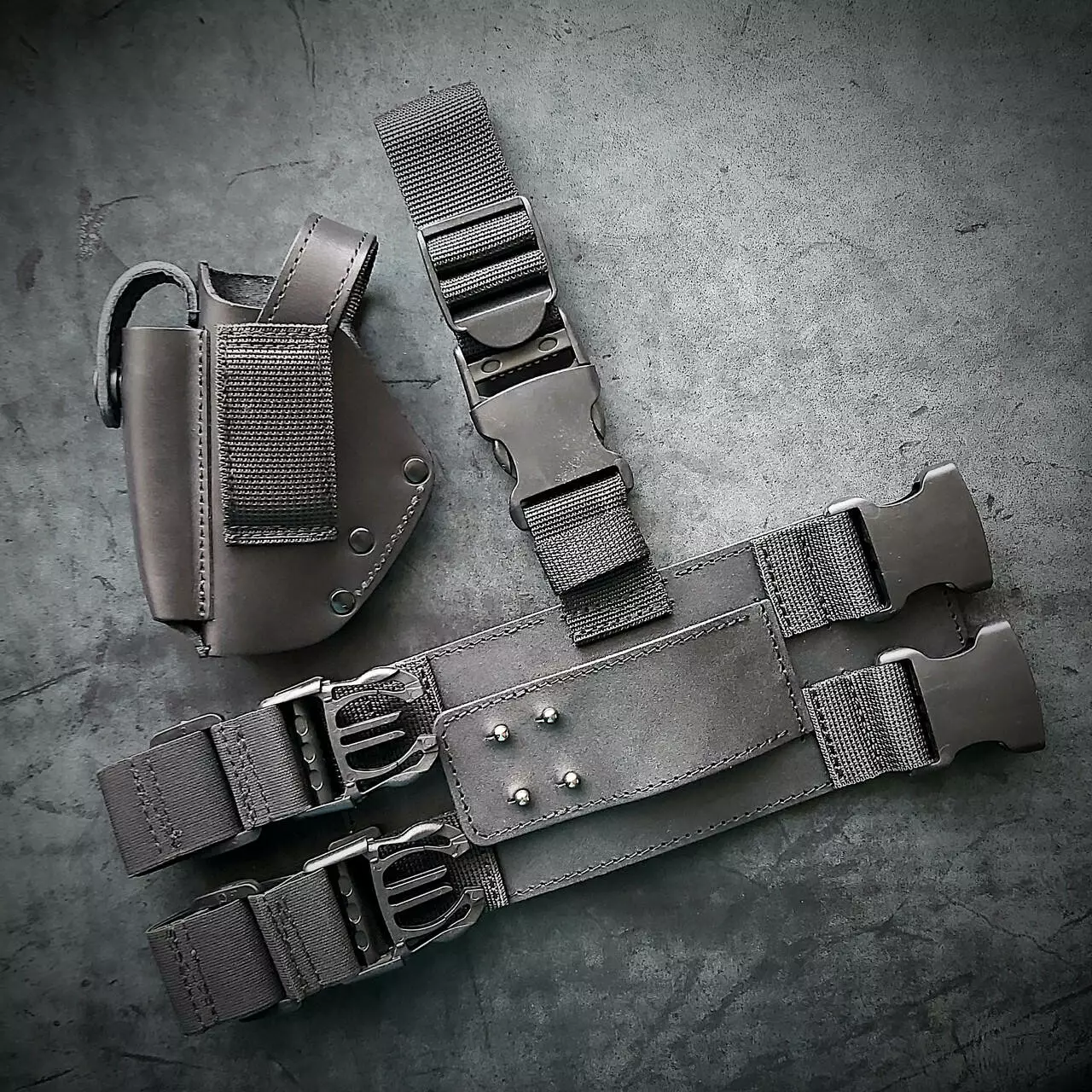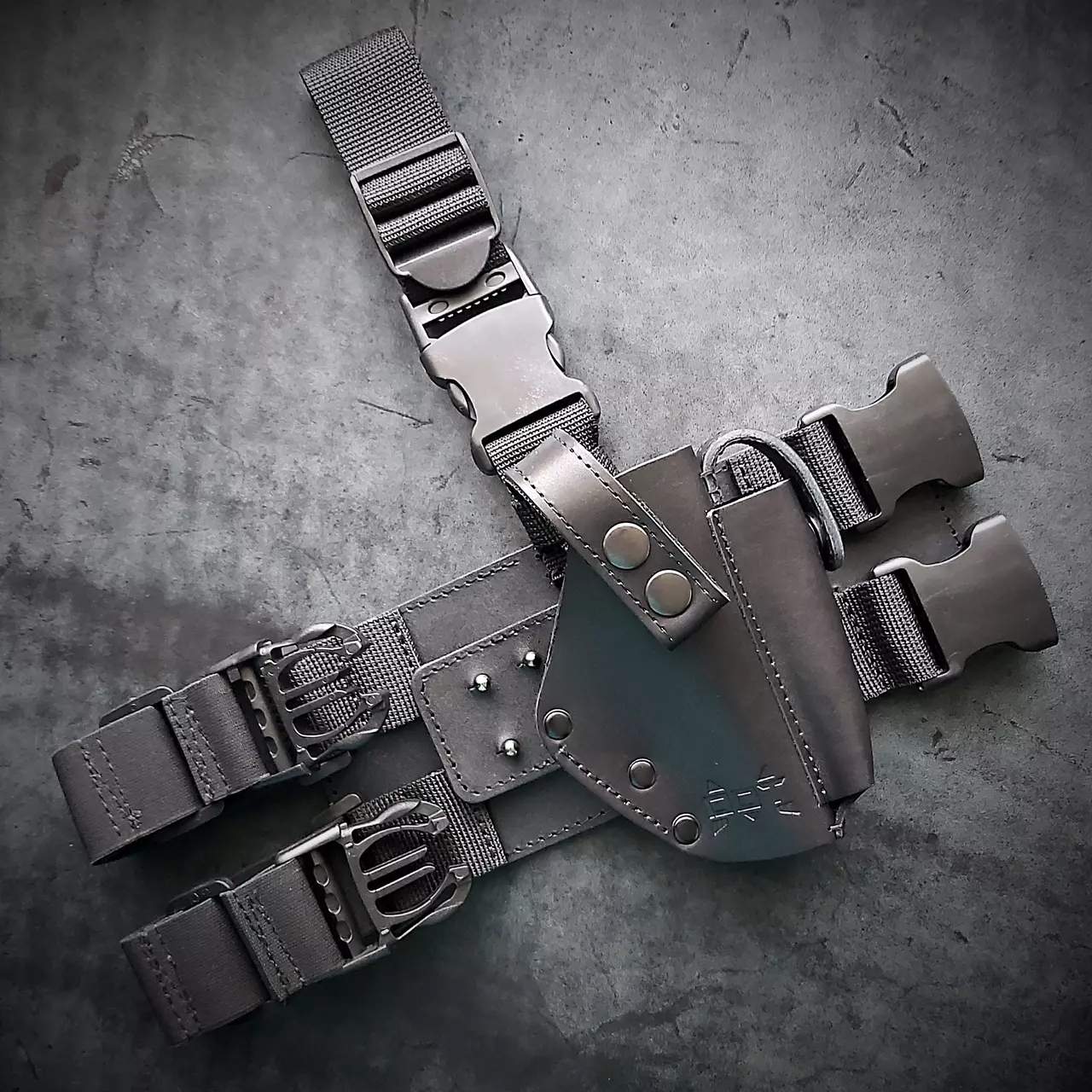 - Кобура фіксується зверху через кільце і на 4 кобурних болтах збоку, що запобігає відстібанню під час бігу. Не бовтається, сидить щільно.