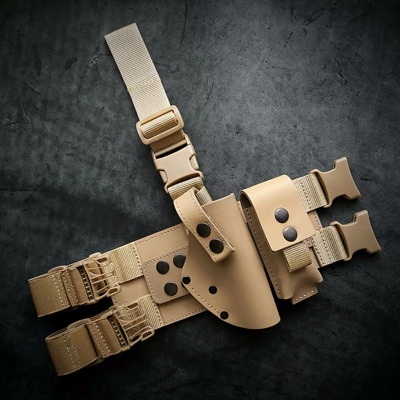 - Кобура та паучер знімні, можна носити на ремені. Кріплення на ремінь 5 см завширшки.