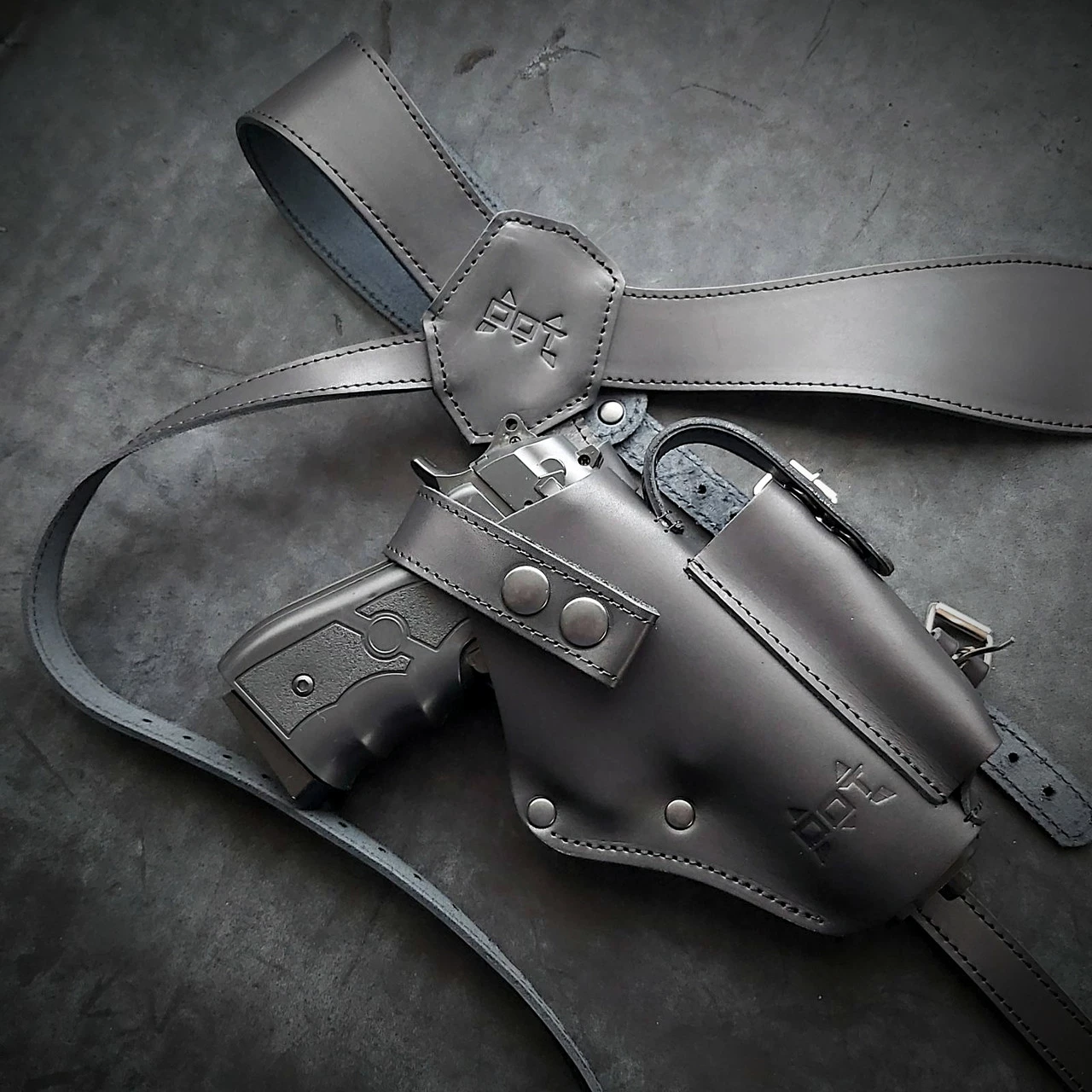 Кобура оперативна, прихованого носіння, шкіряна під BERETTA 92. Виконана із щільної натуральної шкіри. Колір чорний Пістолет та магазин фіксуються на кнопках. Кобура знімається і можна носити на ремені. Кріпиться на ремінь за допомогою скоби, а також простягнувши ремінь крізь отвір. Підходить під ремінь 5 см завширшки Скоба міцна металева Виробник Україна. Робимо під праву та ліву руку!