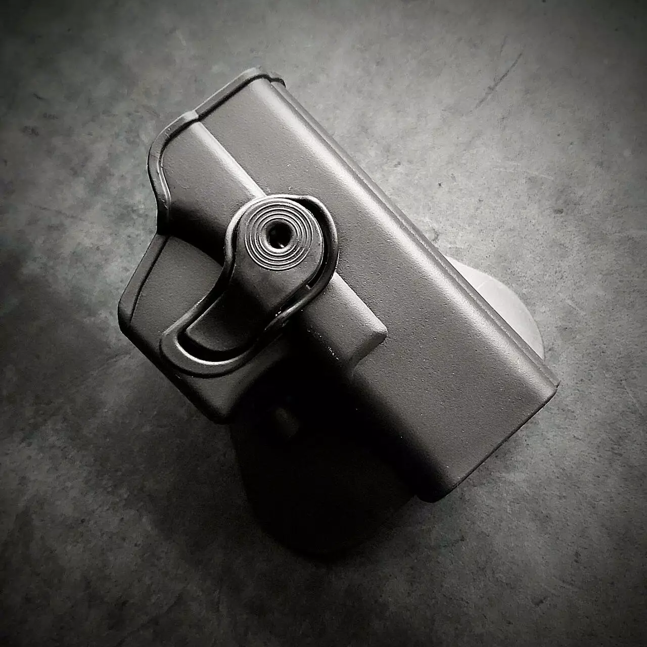 - Кобура виконана із щільного пластику. Колір чорний. Підходить під Glock 19