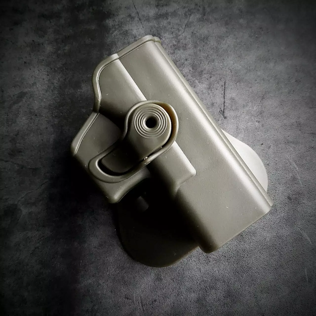 - Кобура виконана із щільного пластику. Колір олива. Підходить під Glock 19