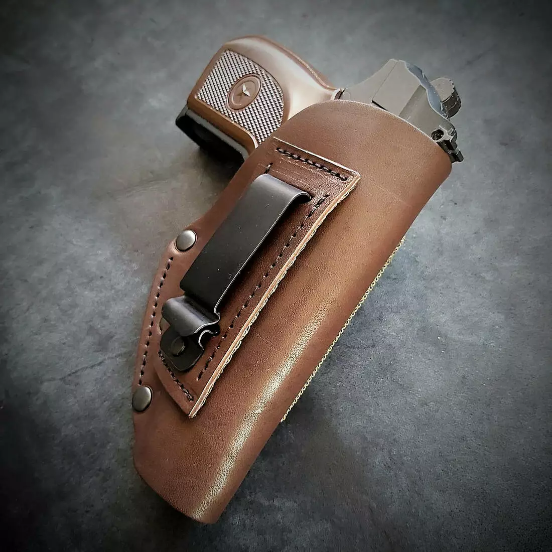 Кобура поясна| прихованого носіння| шкіряна (коричнева) на скобі, під ПМ
