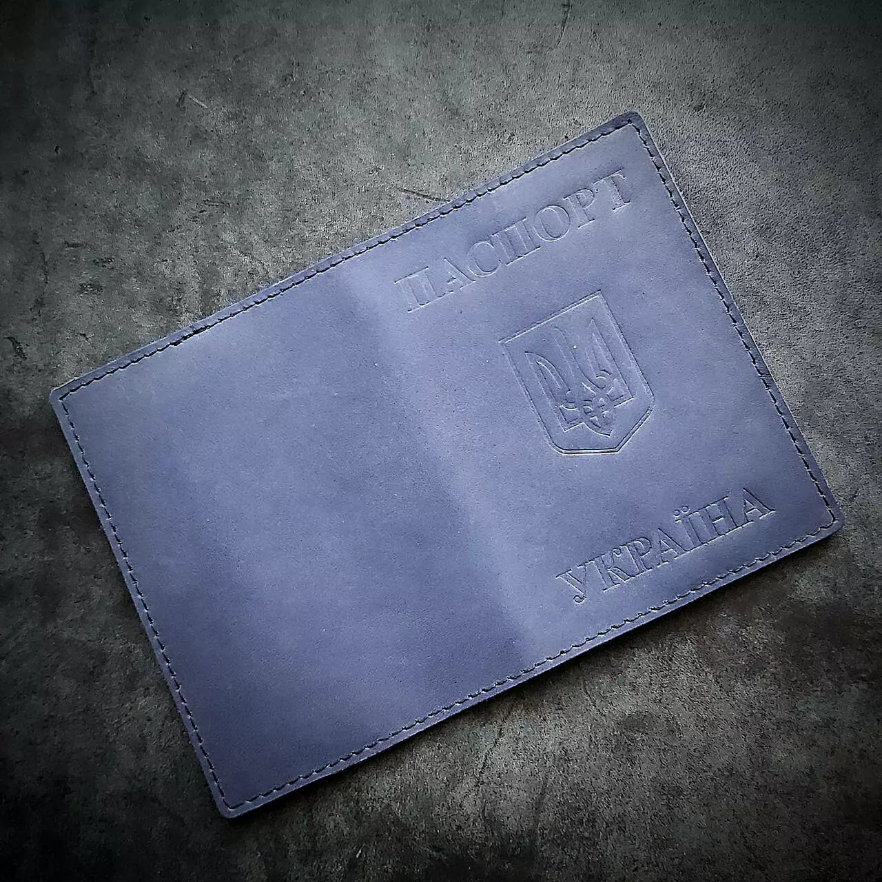 Обкладинка на паспорт України виконана із щільної натуральної шкіри. Колір синій