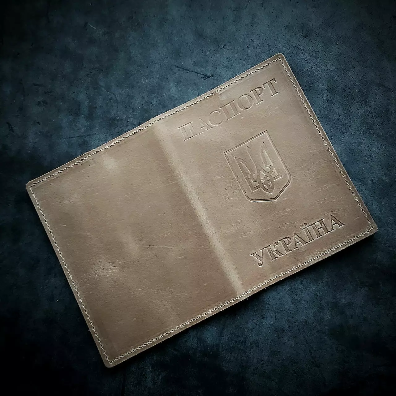 Обкладинка на паспорт України виконана із щільної натуральної шкіри. Колір світло-коричневий