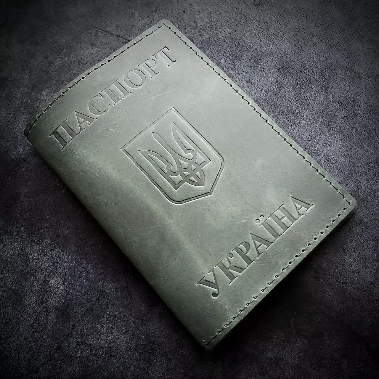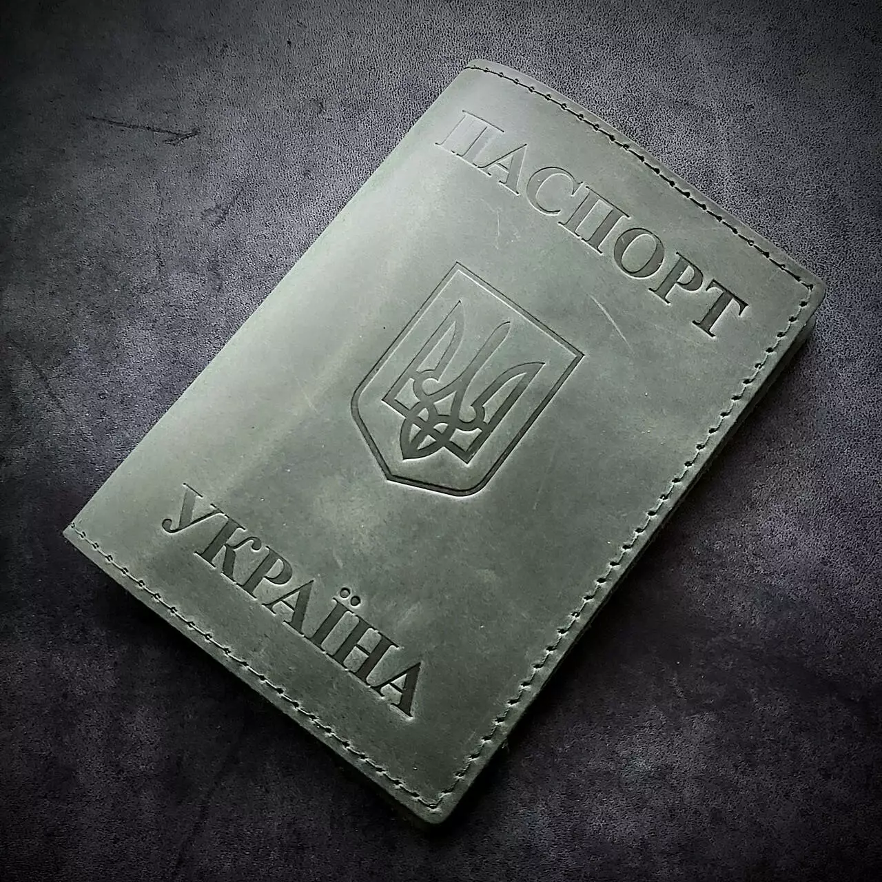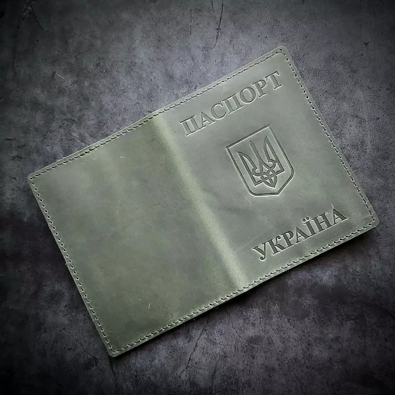 Обкладинка на паспорт України виконана із щільної натуральної шкіри. Колір зелений