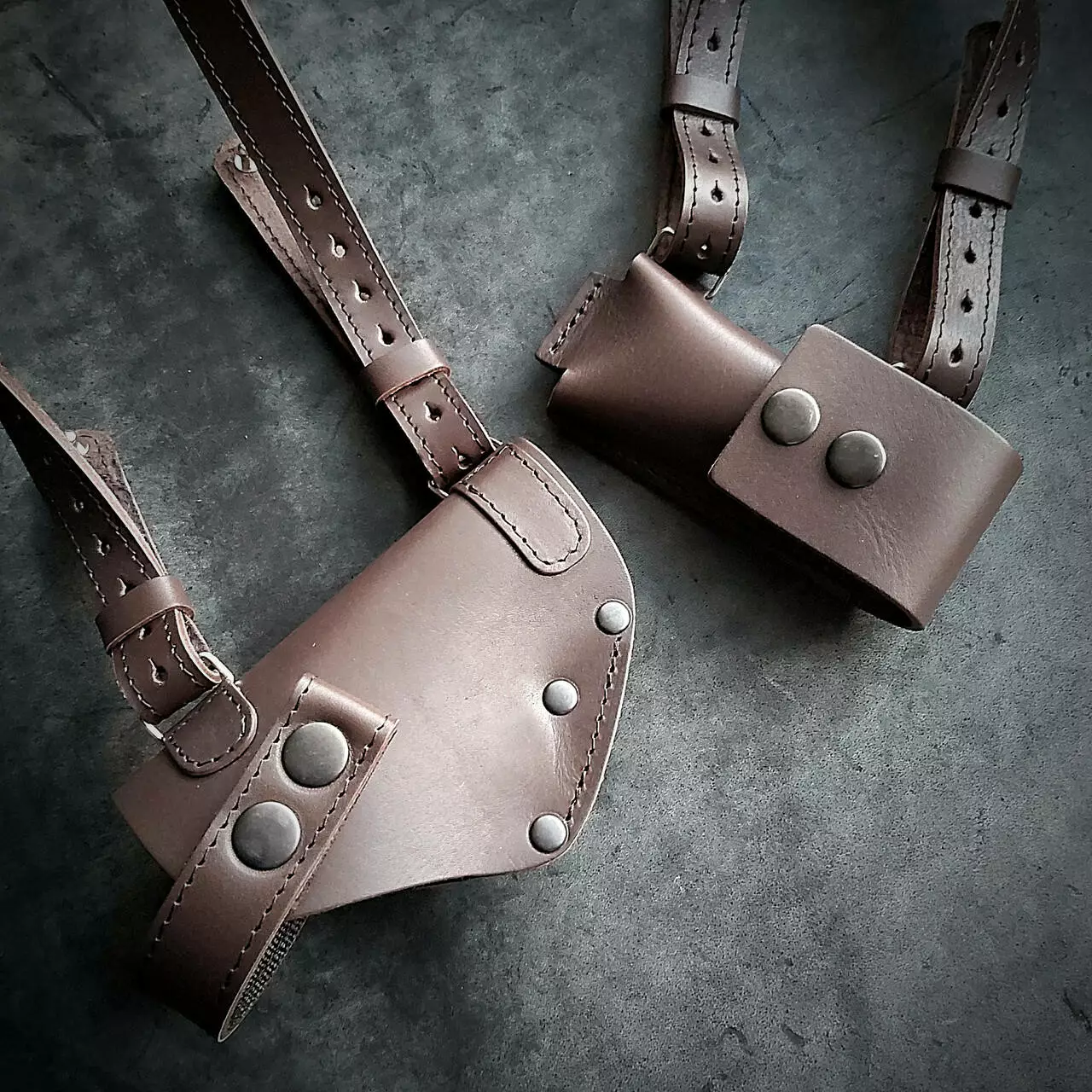 - Кобура ліворуч, паучер праворуч. Кобура і паучер знімаються з наплічної системи і можна носити на ремені шириною 5 см.