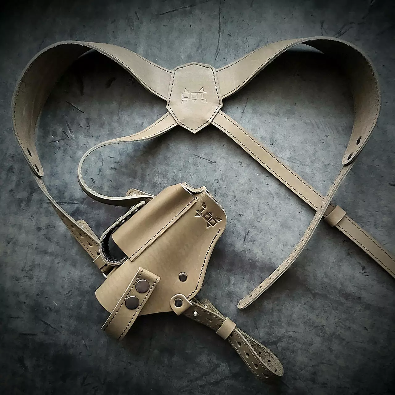 - Кобура із магазином! Знімається з наплічної системи і можна носити на ремені шириною 5 см.