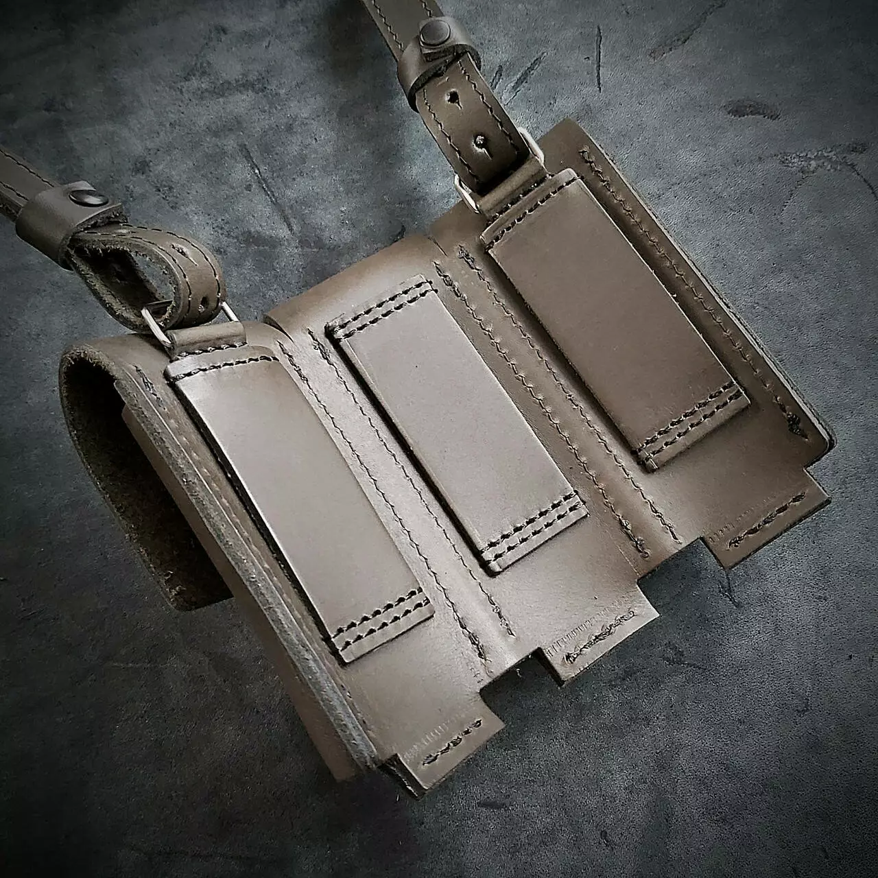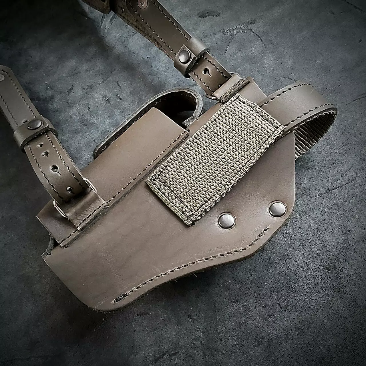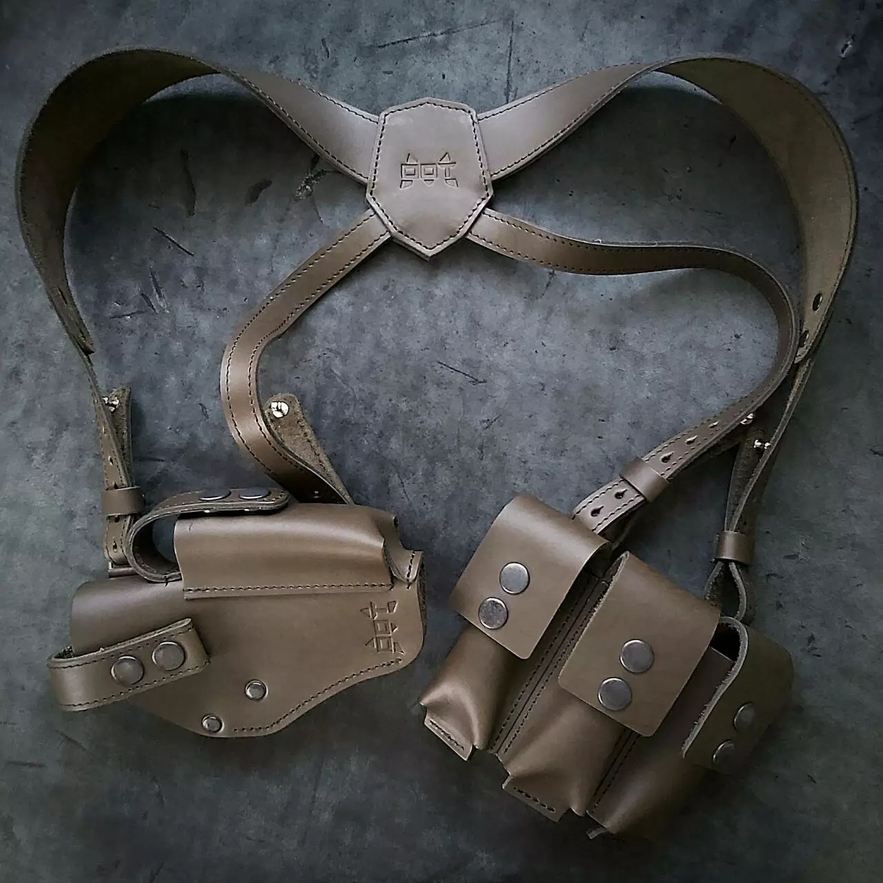 - Кобура ліворуч, паучери праворуч. Кобура і паучери знімаються з наплічної системи і можна носити на ремені шириною 5 см.