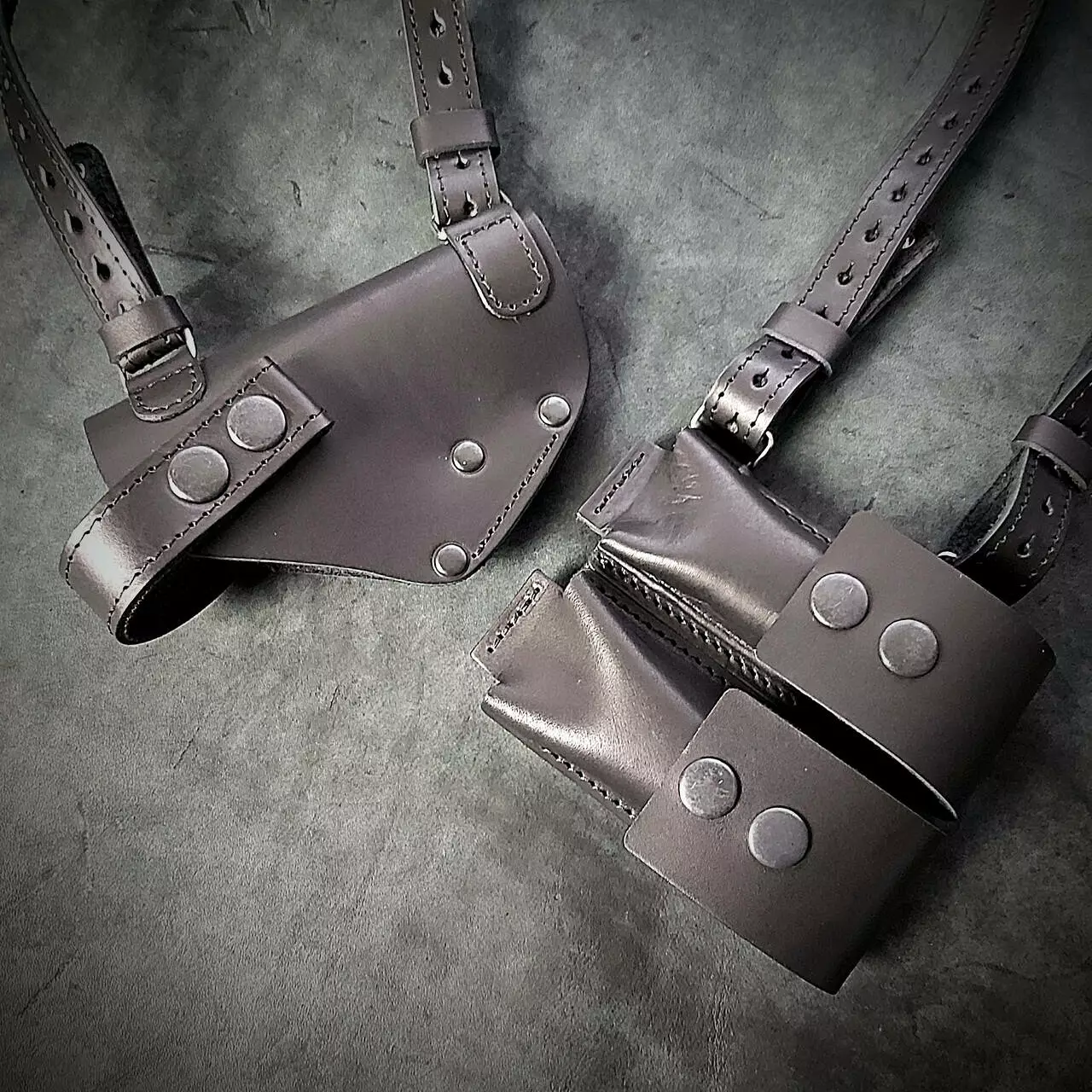 Шкіряна оперативна кобура прихованого носіння під ТТ з паучером під два магазини.