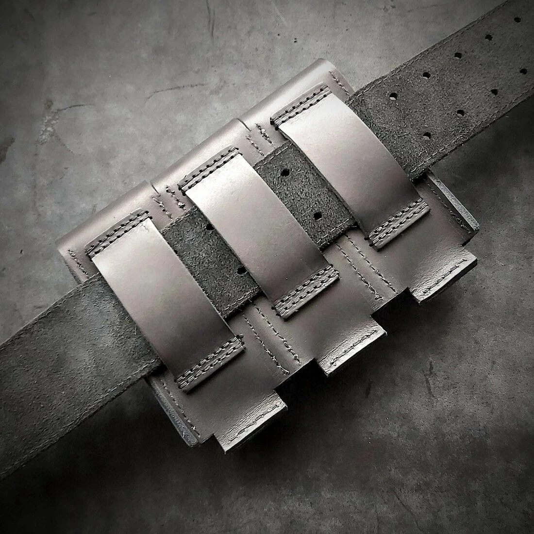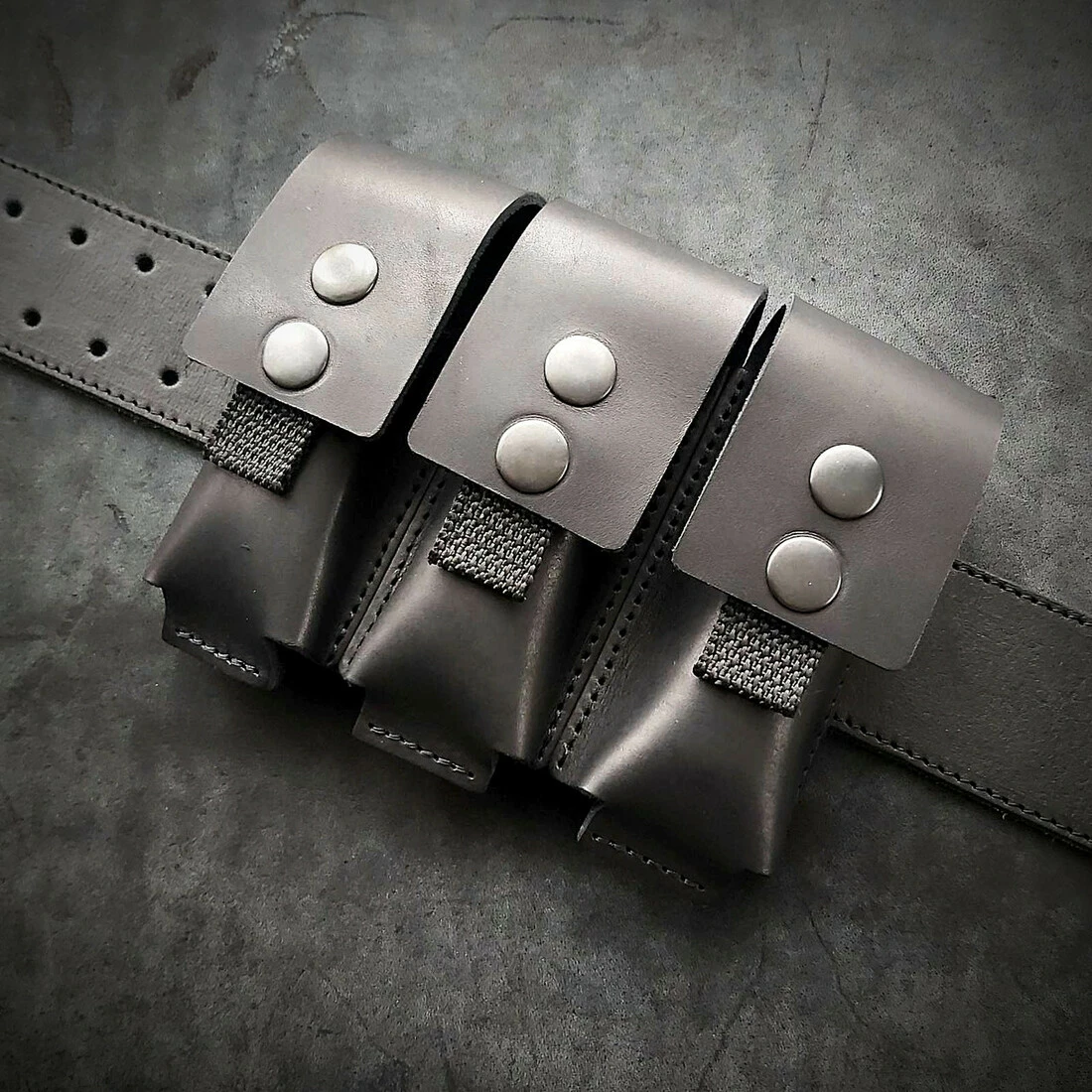 Паучер (підсумок) під магазин ТТ на три відділи. Виконаний із натуральної щільної шкіри під ремінь 5 см завширшки. Колір чорний