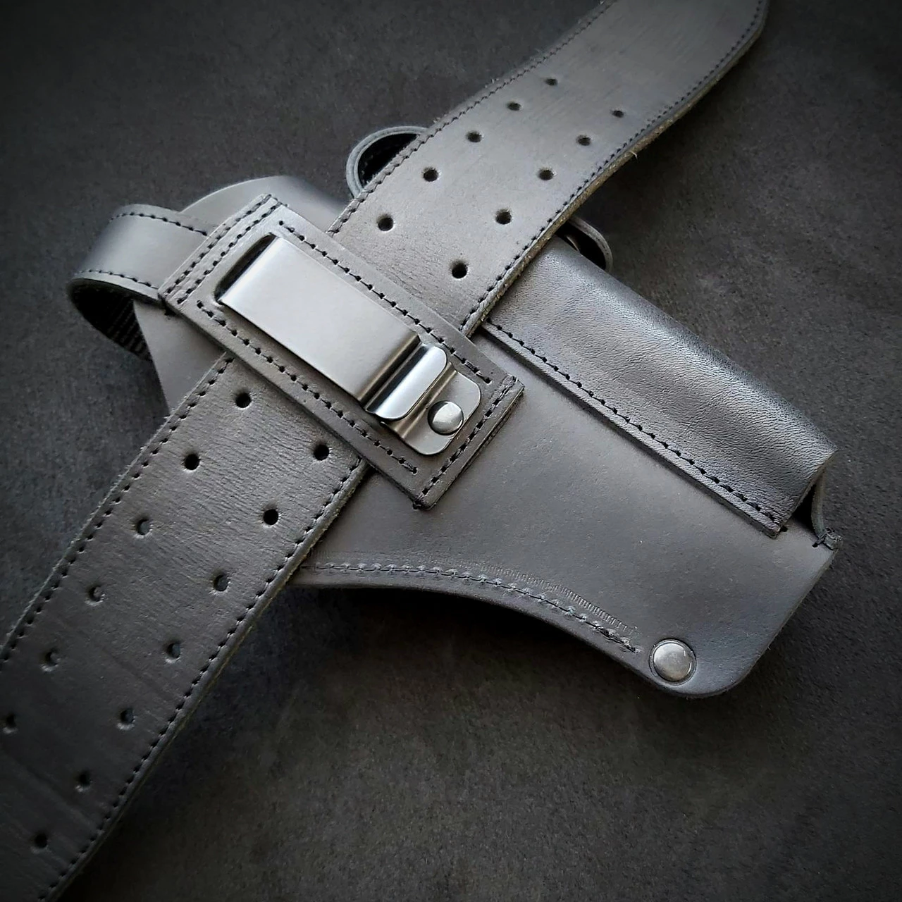 Кобура поясна, шкіряна, для шульги (під АПС) чорна, на скобі