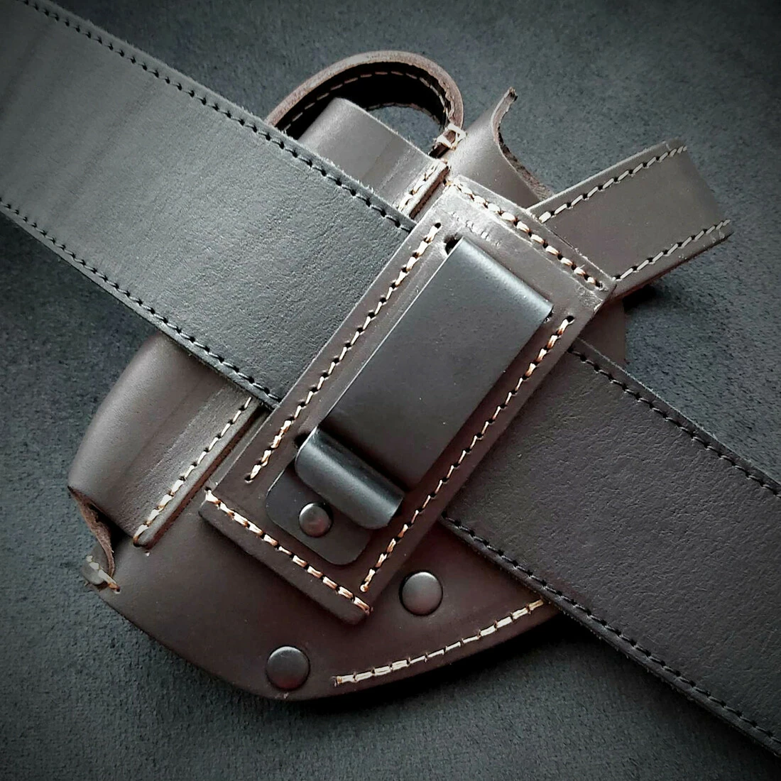 Кобура поясна під ПМ (Макаров) з магазином. Виконана із щільної шкіри 2.5 мм завтовшки. Колір коричнева Пістолет та магазин фіксуються на кнопках. Кріпиться на ремінь за допомогою скоби, а також простягнувши ремінь крізь отвір. Підходить під ремінь 5 см завширшки Скоба міцна металева
