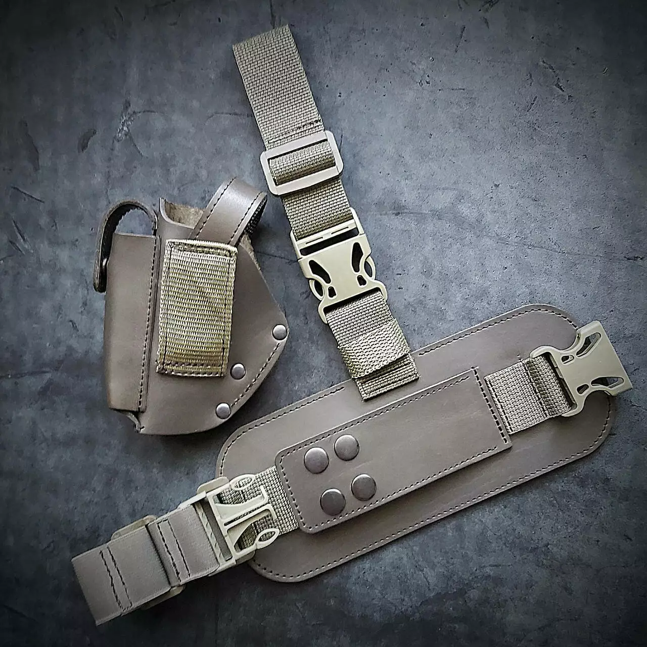 Кобура на стегно, універсальна, шкіряна під ФОРТ 12/14/17/20. Колір олива.