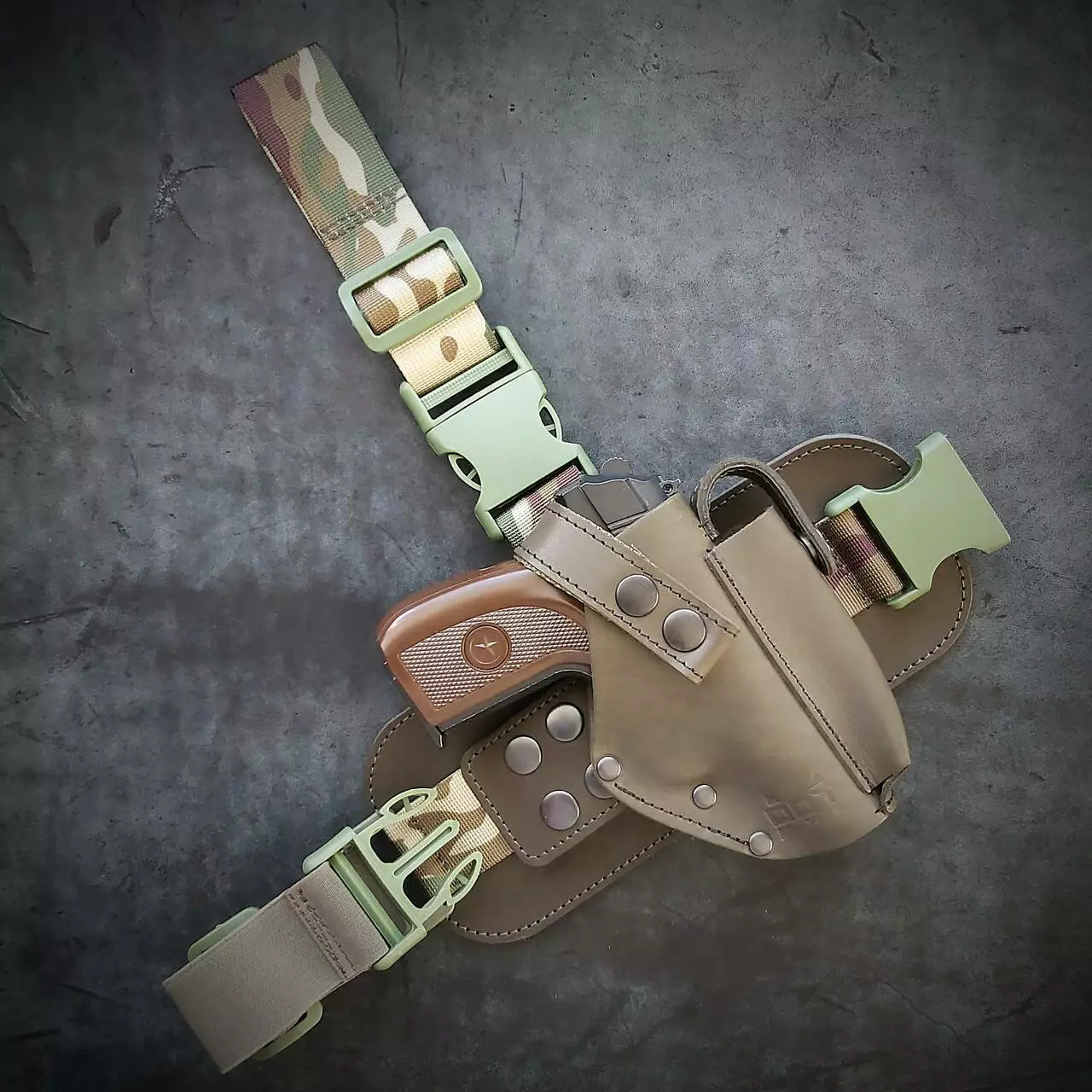 Кобура на стегно під ПМ, шкіряна. Колір темна олива