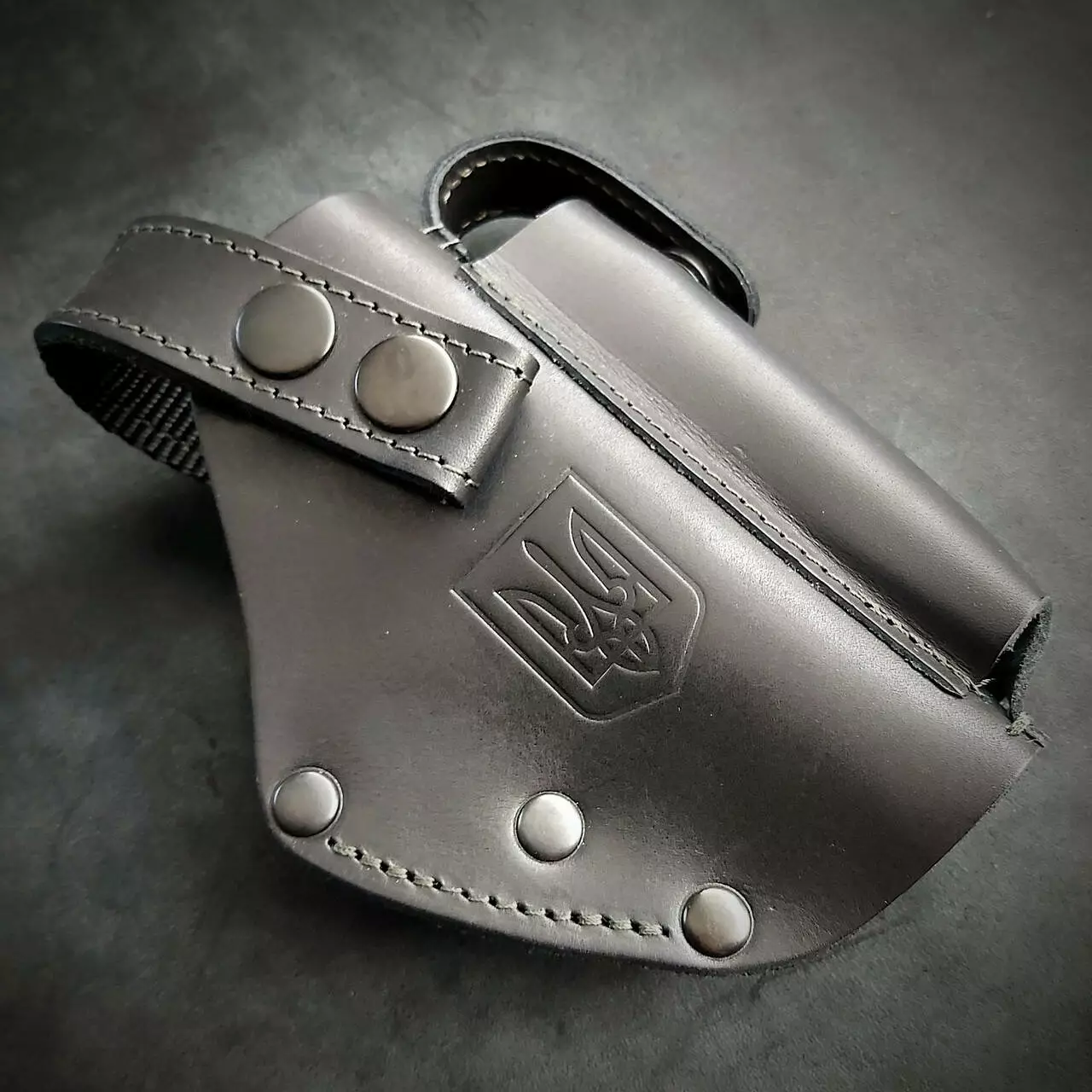 Шкіряна кобура поясна для ФОРТ 12/14/17/20| герб України| на скобі| чорна