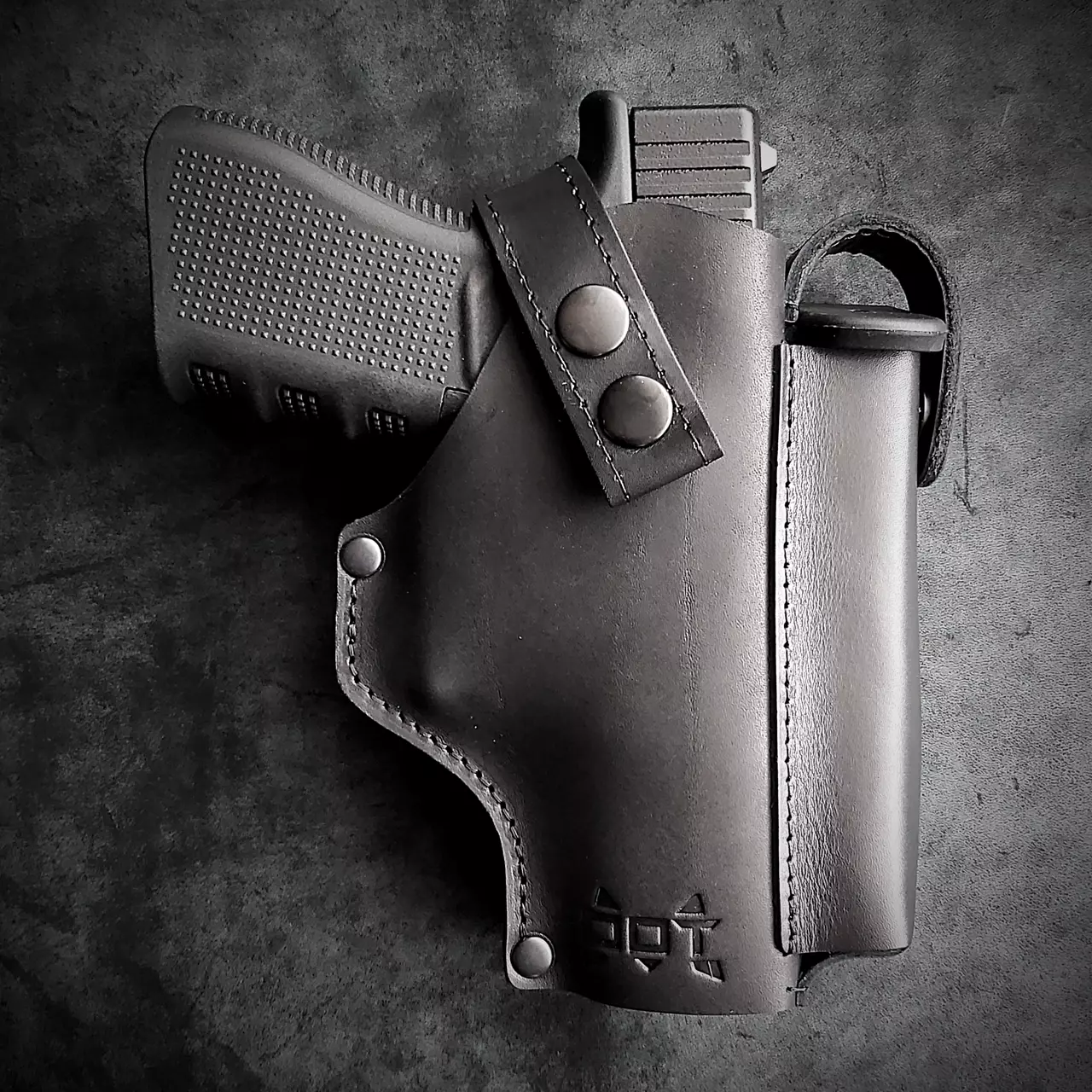 Шкіряна кобура поясна під GLOCK 17, чорна з кліпсою