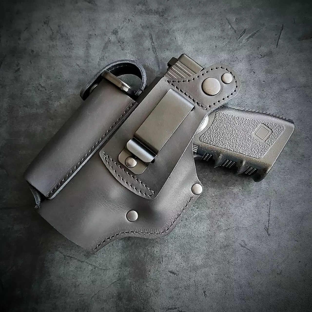 Кобура поясна, шкіряна під Glock 19. Колір чорний. Виконана з натуральної щільної шкіри КРС.