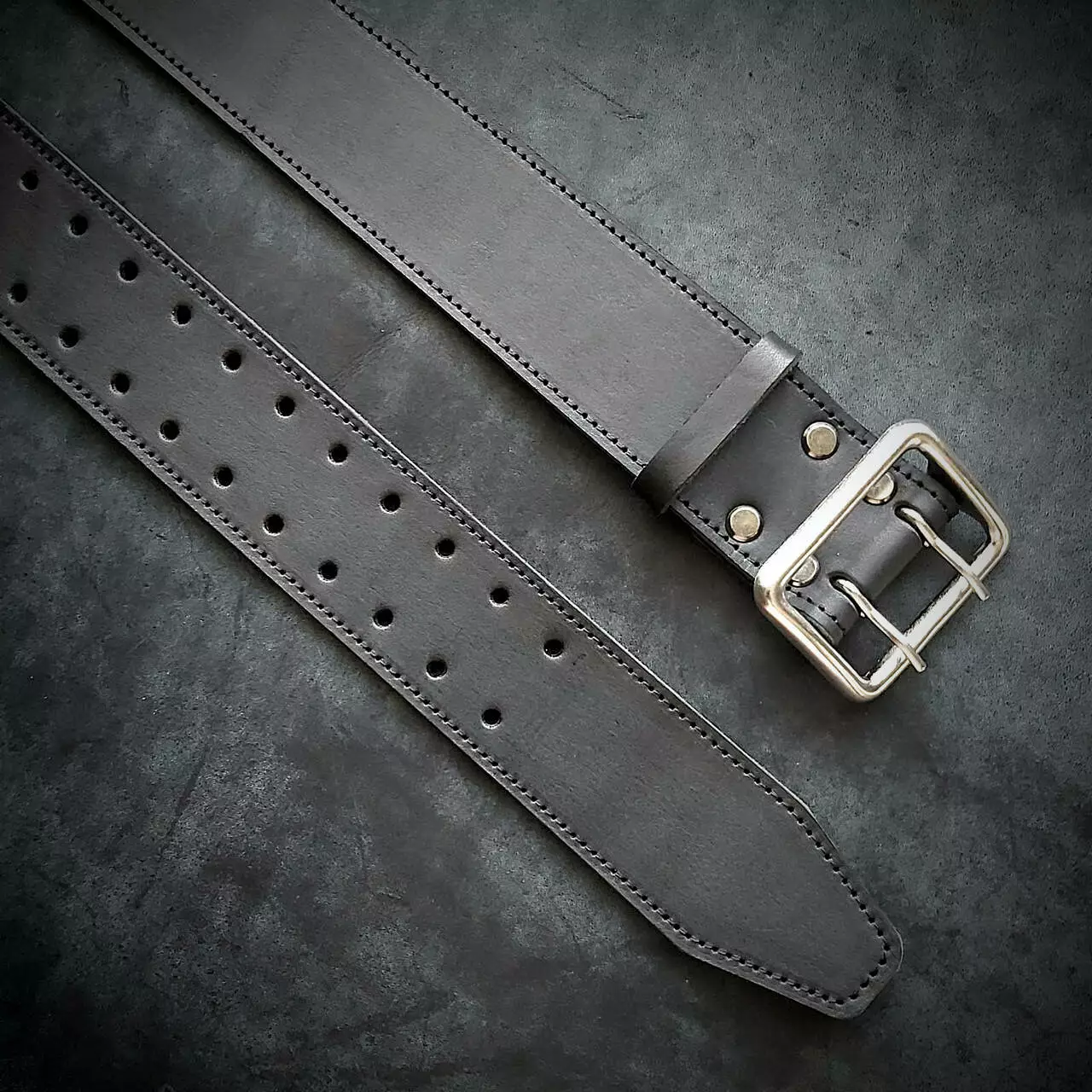 Шкіряний ремінь 5 см ширина, чорний, офіцерський